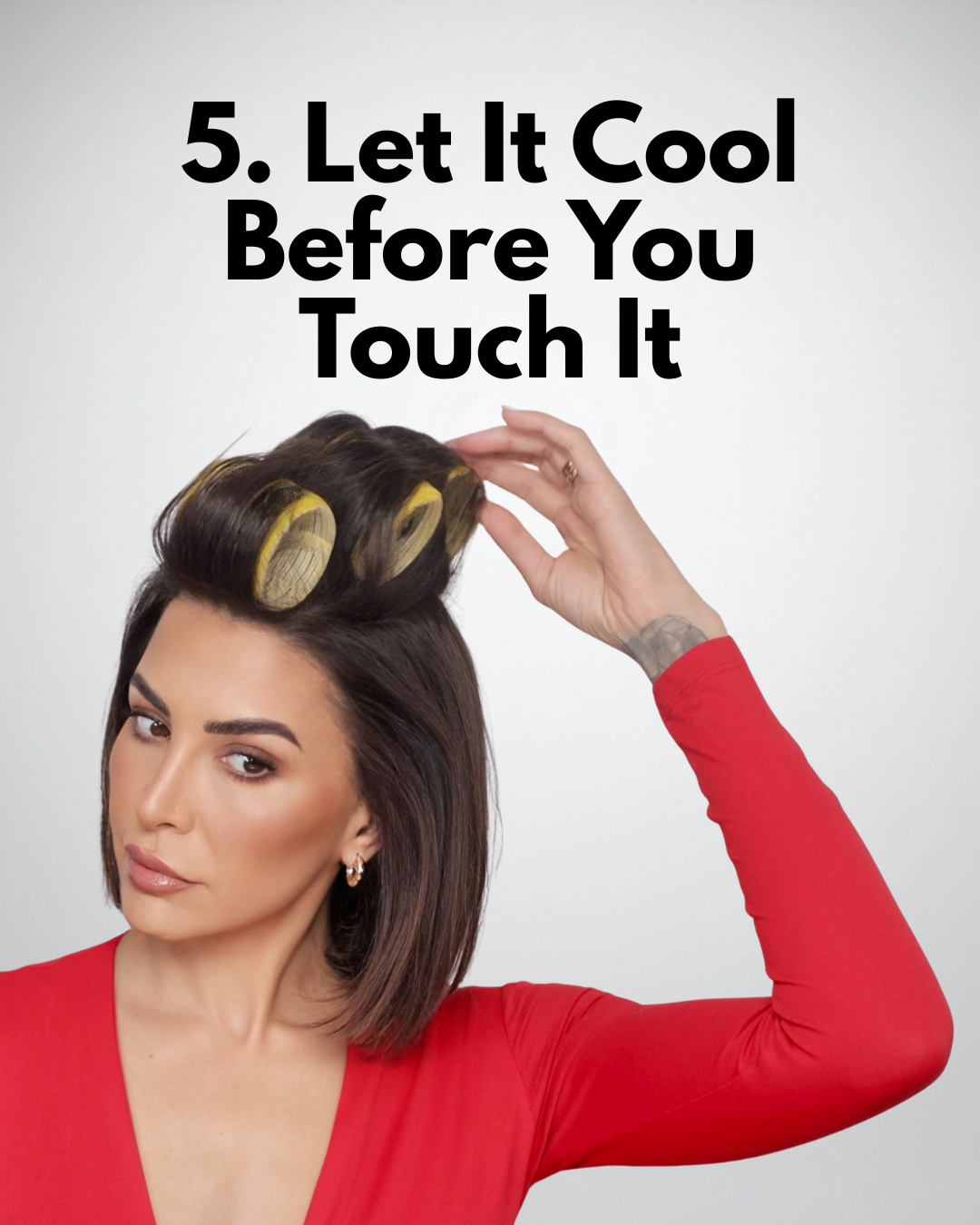 For extra lift at the crown, pop in a medium or large Velcro roller while the hair cools. It holds volume without teasing and gives that soft, salon-style finish.