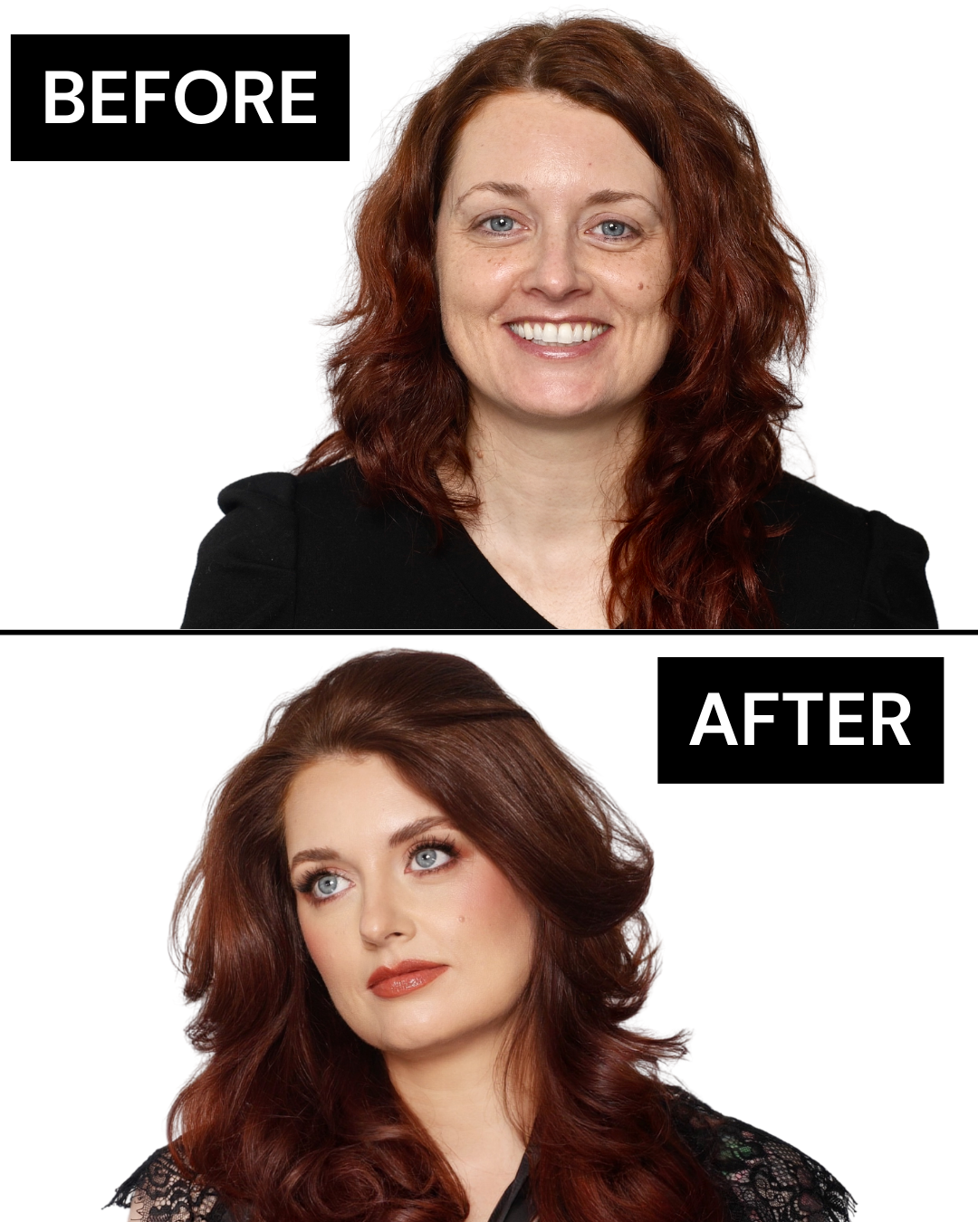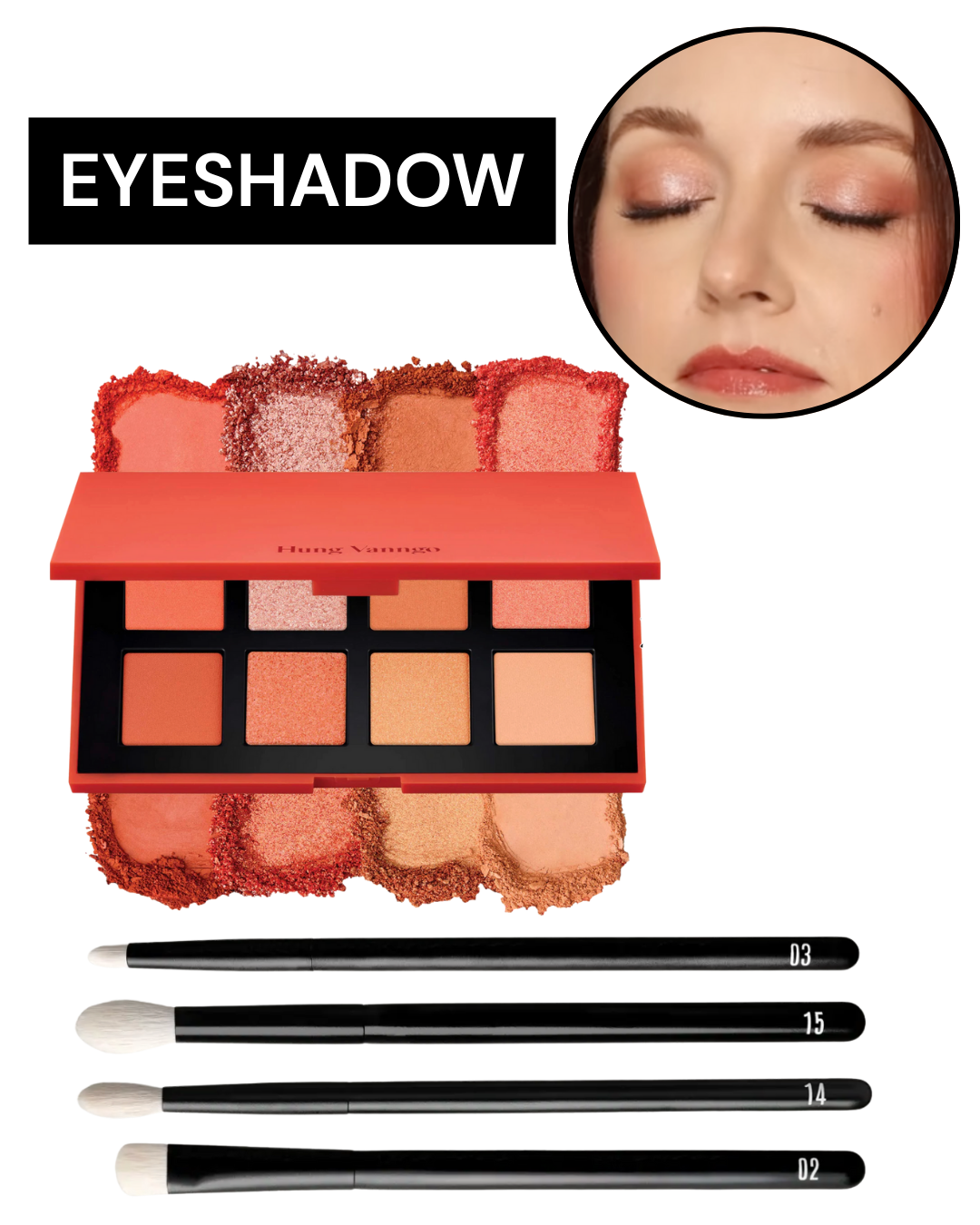 We used the Hung Vanngo Color Story Palette in Outstanding Orange to create a warm copper look that enhances blue eyes.